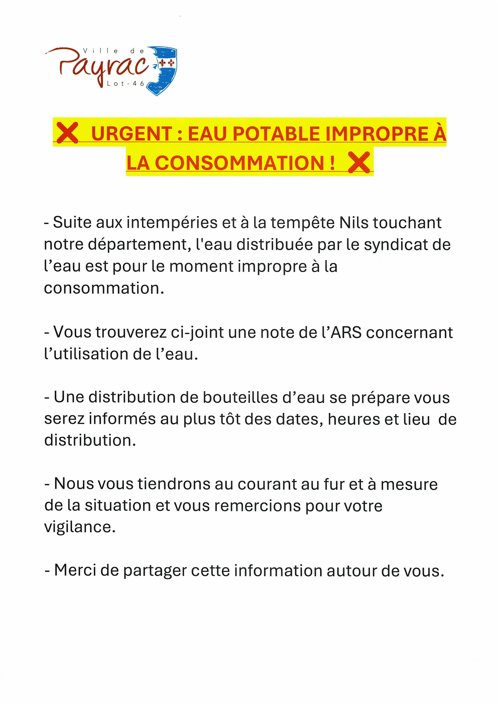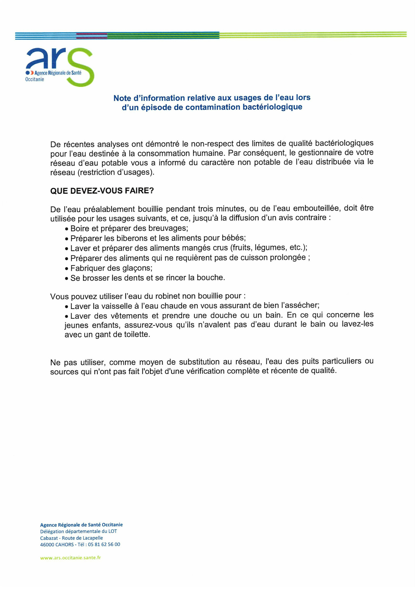 Eau potable impropre à la consommation